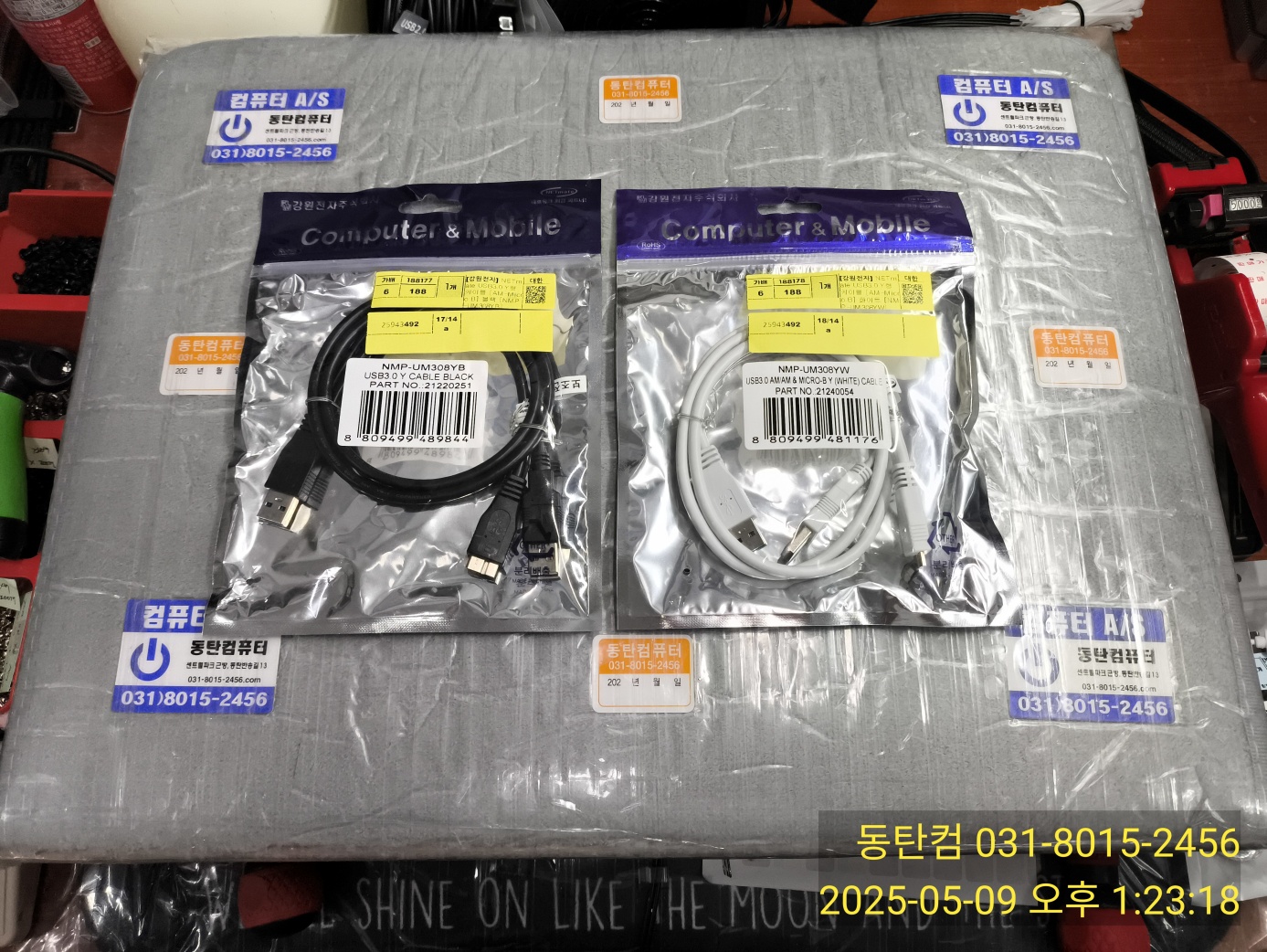 아래는 USB 케이블입니다. 주로 프린터 케이블로 사용되는 B타입이네요. 그 외에도 USB 연장선과 마이크로B 타입 3.0 케이블 등 다양한 케이블을 보유하고 있습니다. (흔히 일반적으로 사용되는 제품만 있고 특수한 제품은 없을 수 있습니다.)
