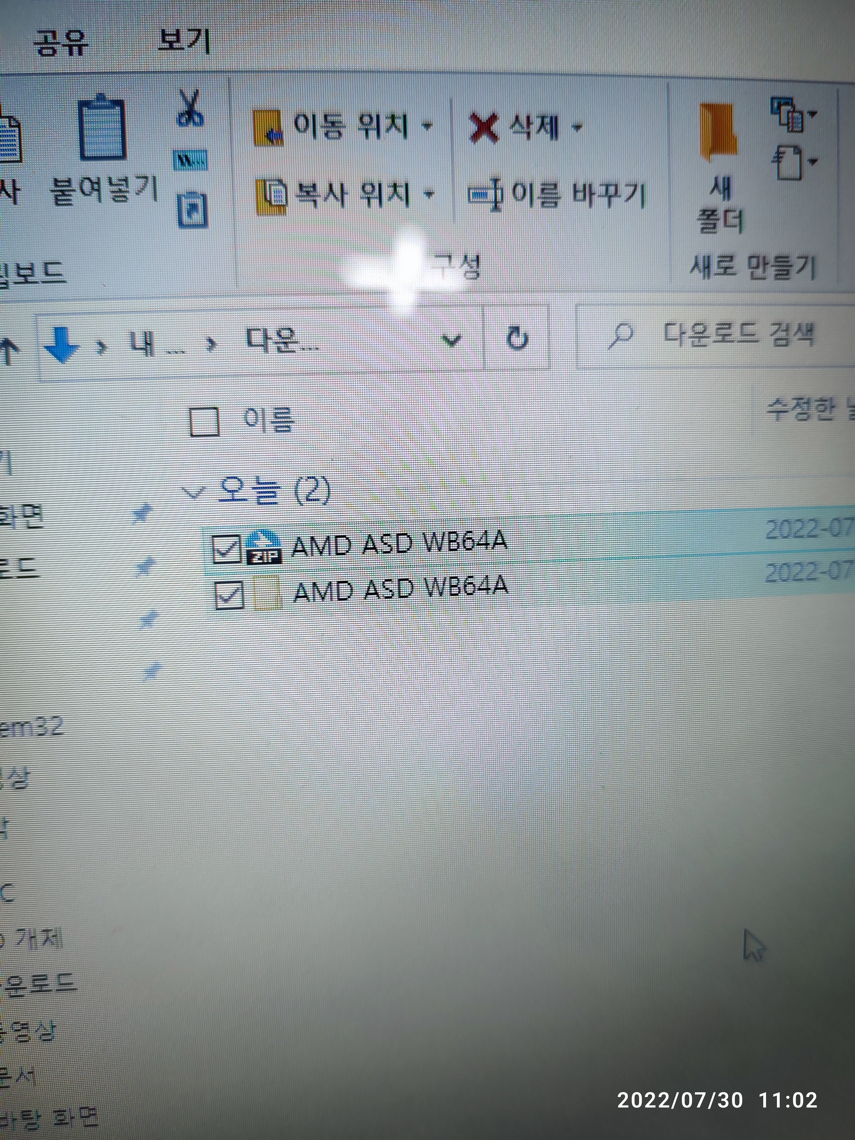 다운받았던 드라이버의 이름 AMD ASD WB64A