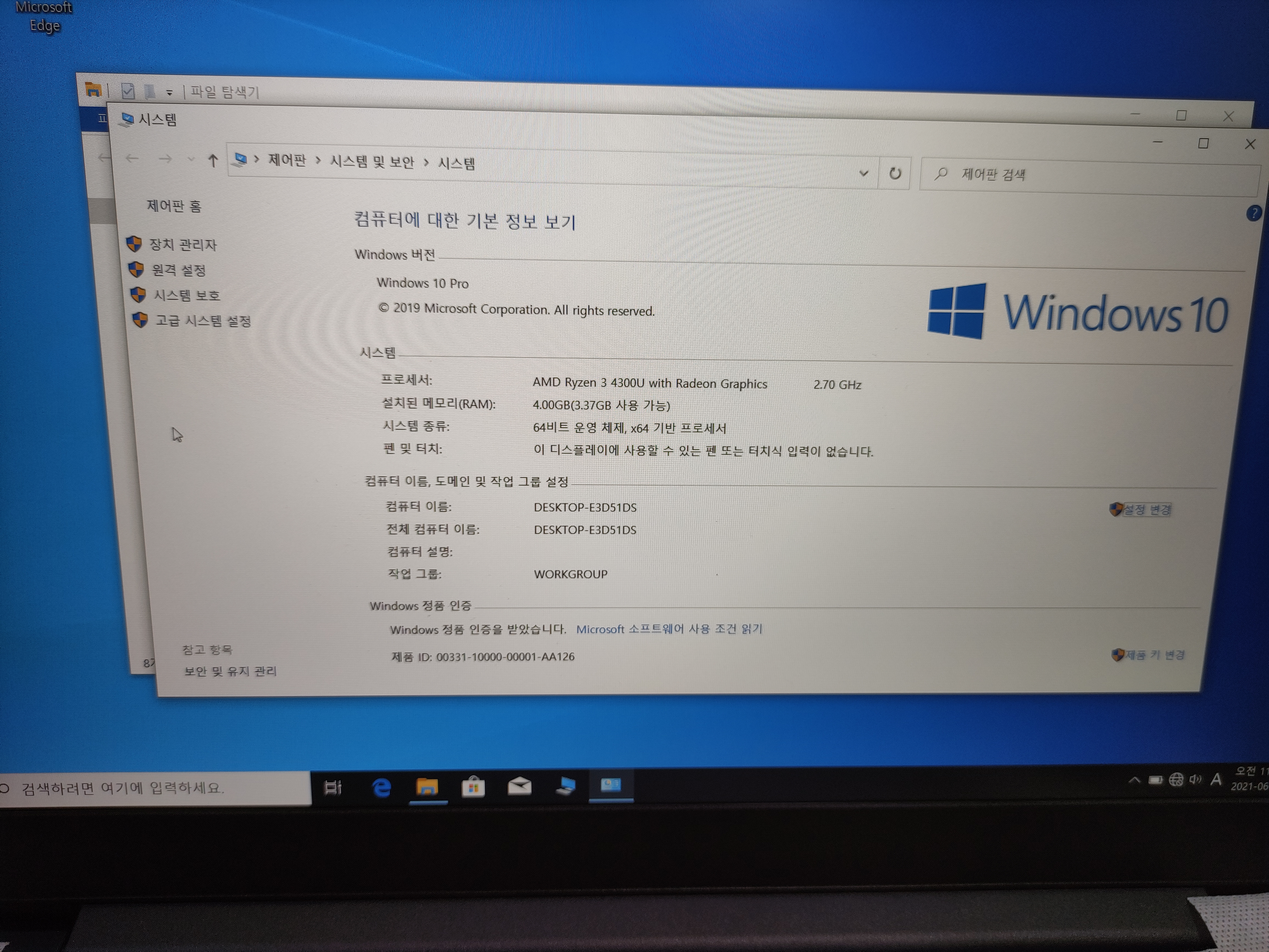 윈도우 재설치하기 전에 메인보드에서 RAM 용량과 SSD 모델명을 확인하고 있습니다. 이 제품은 i3 CPU가 장착된 제품이라서, 위와 같이 RAM, SSD 업그레이드하면, 사무용 정도로 사용이 가능할 사양입니다. 셀로론, 팬티엄 CPU가 장착된 일체형 컴퓨터는 업그레이드해도 느리기 때문에 업그레이드는 권장하지 않습니다. 컴퓨터를 새로 구입하시는 편이 낫습니다. 이 제품은 게이밍 컴퓨터로 나온 제품은 아니고 사무용도 정도로 생산된 제품이라서 3D 게임 실행은 안 됩니다.